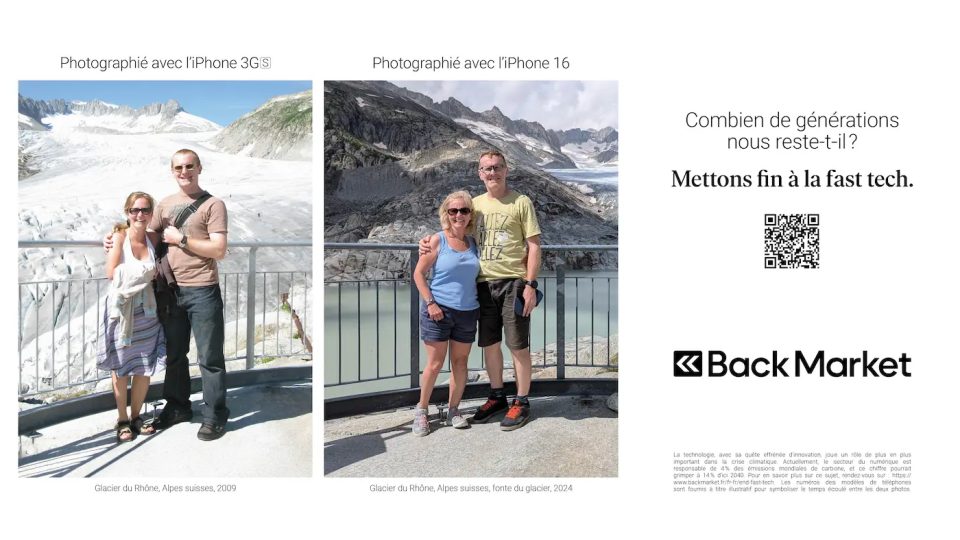 Nina Quellier : oui, en fait, pour aller dans votre sens, Back Market a voulu donner une place à part et mieux dimensionnée à l’activisme de marque. Une création de poste pour un département que je dirige depuis six mois. L’idée étant d’aller sur des sujets de société et de les traiter comme des combattants. Pour cette campagne, il s’agissait d’aller au-delà du sujet du conditionnement, -notre marque de fabrique-, pour inscrire Back Market en tant qu’acteur du changement. C’est ainsi qu’est né le concept de fast tech, que nous avons choisi pour évoquer la surconsommation au sein de la tech, tout comme la fast fashion, qui fait son travail au sein du prêt à porter.
