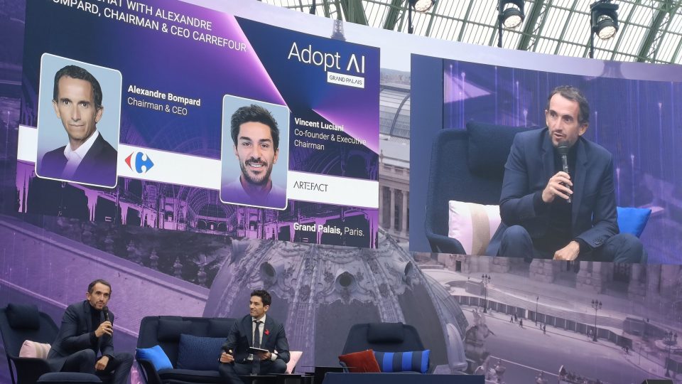 PDG de Carrefour depuis huit ans, après avoir été PDG de Fnac (2011-2017) et d’Europe 1 (2007-2010), Alexandre Bompard était interrogé ce 25 novembre par Vincent Luciani, CEO d’Artefact, à l’origine d’Adopt AI, événement dédié à l’IA organisé au Grand Palais. Il est notamment revenu sur sa vision de l’innovation et le rôle de l’IA au sein d’une entreprise comme Carrefour.