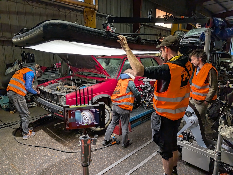 Garée depuis trop longtemps au fond d’un jardin, une vieille Golf 2 s’apprête à vivre son dernier voyage. Mais ici, pas de sirène triste ni de bruits de ferraille lugubres : c’est au son du banjo, de la trompette et de chœurs enjoués qu’elle est collectée, démontée, puis broyée — littéralement — par les équipes de Derichebourg Environnement.