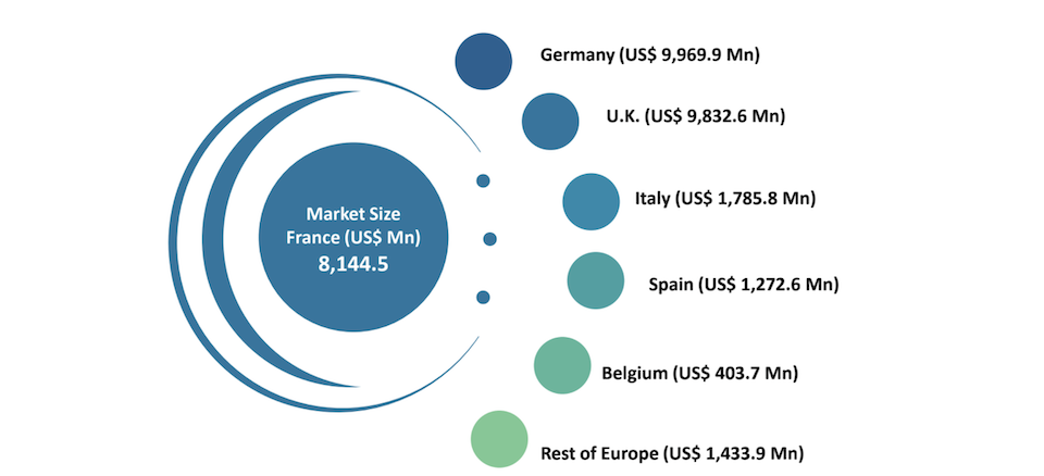 Trois pays concentrent l’essentiel du marché européen. L’Allemagne domine avec un marché estimé à 9,01 milliards $ en 2025, talonnée de près par le Royaume-Uni (8,94 milliards $) et la France (8,14 milliards $).