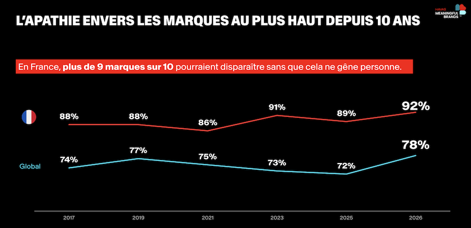En 2025, plus de 92% des Français estiment que les marques pourraient disparaître sans que cela ne les affecte.