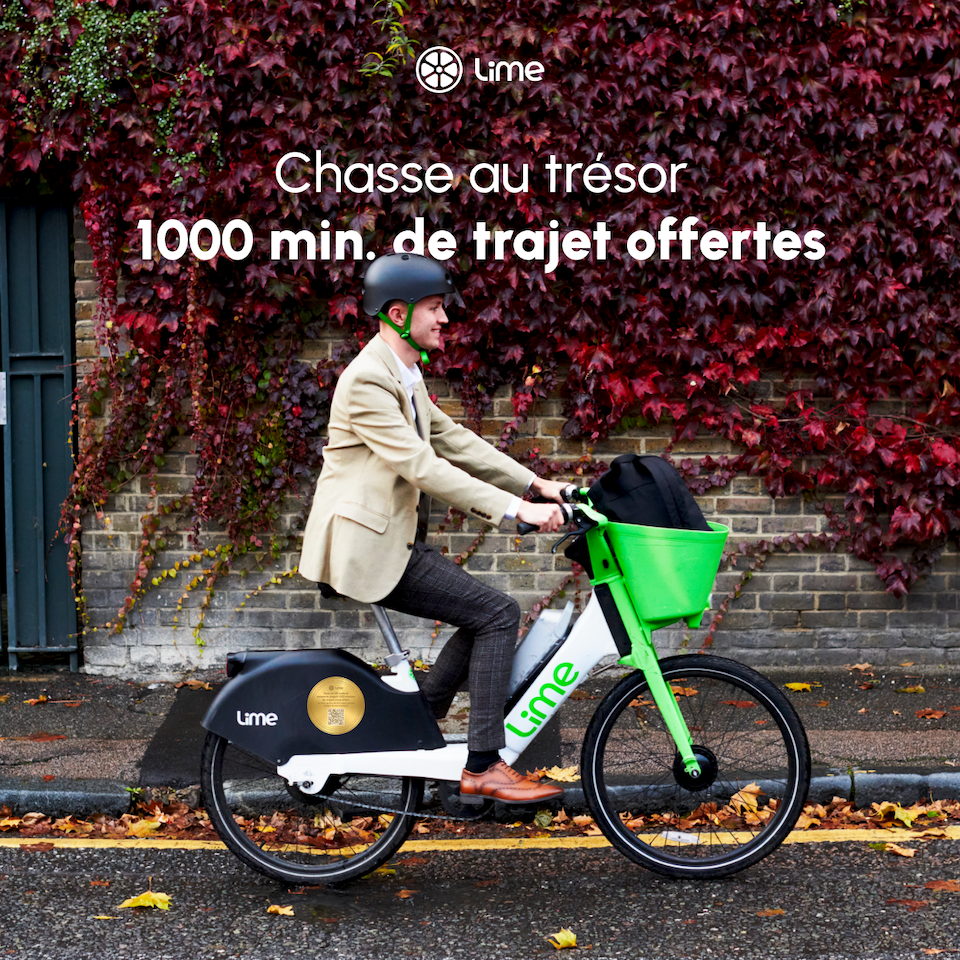 Lime démarre l’année avec une vaste chasse au trésor dans les rues parisiennes. Un sticker doré a été apposé sur un seul des 6 000 vélos en circulation dans la capitale. Le premier utilisateur qui le repère et scanne le QR code remporte 100 trajets gratuits de 10 minutes chacun, soit l’équivalent de 16 heures de déplacement valables jusqu’à fin 2026.