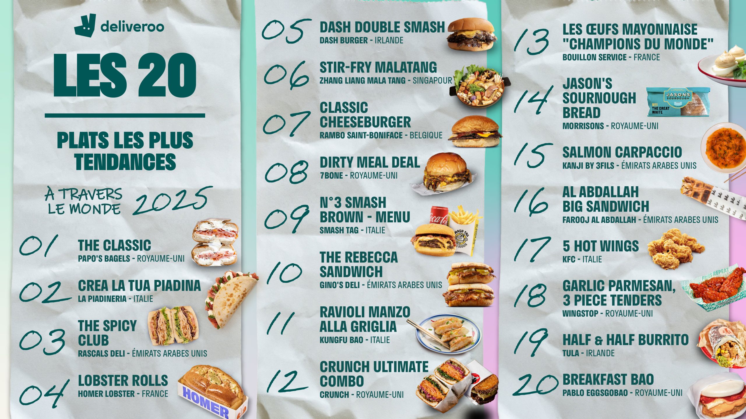 Deliveroo a dévoilé, pour la 9ème année consécutive, la liste des 100 plats les plus tendances en France et à travers le monde.