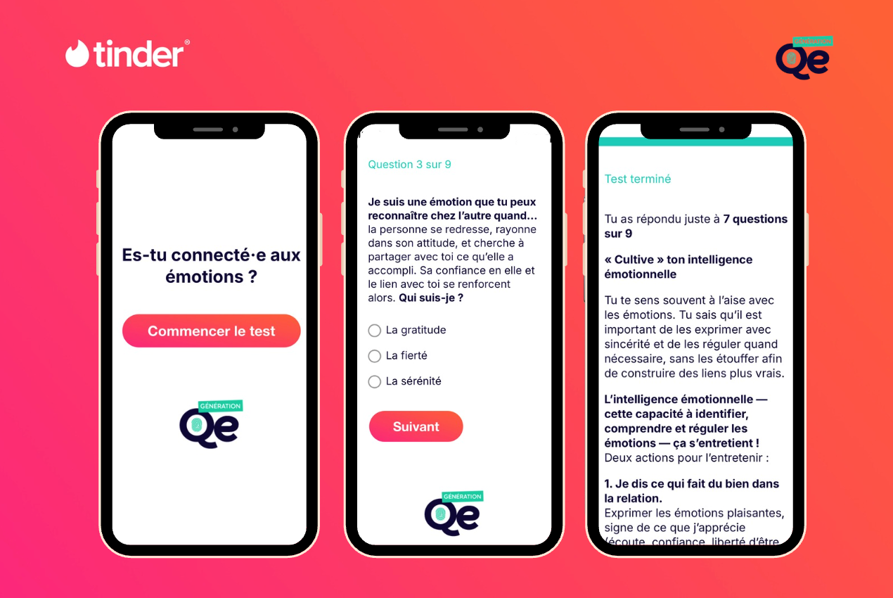 L'application de rencontre Tinder débute l'année en testant l'intelligence émotionnelle de ses utilisateurs au travers d'un questionnaire mis en place avec Génération QE, spécialiste français du sujet.