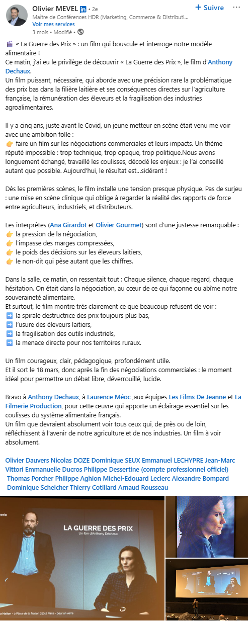 En 2026, les négociations commerciales ne feront pas seulement les titres de la presse : grâce au réalisateur Anthony Déchaux, elles occuperont aussi les salles de cinéma, à l’occasion de la sortie du film La Guerre des Prix, le 18 mars.