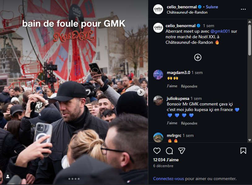 Du 22 novembre au 21 décembre 2025, pour la deuxième année consécutive, Celio a déployé son dispositif « Noël XXL » dans les communes de Le Faou, Châteauneuf-de-Randon et Monpazier, mais aussi à Perwez en Belgique et en Espagne. Le sapin, la grande roue, les chalets, ainsi que GMK et Inoxtag étaient à nouveau de la partie, ainsi qu’une scène de concert et un cinéma en plein air.
