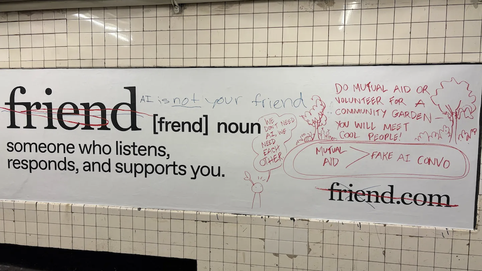 Un million de dollars, des milliers d’affiches dans le métro new-yorkais... la campagne « Friend » pour un compagnon virtuel a joué le coup de force publicitaire. Mais l’opération a surtout déclenché un torrent de réactions hostiles et des détournements moqueurs.