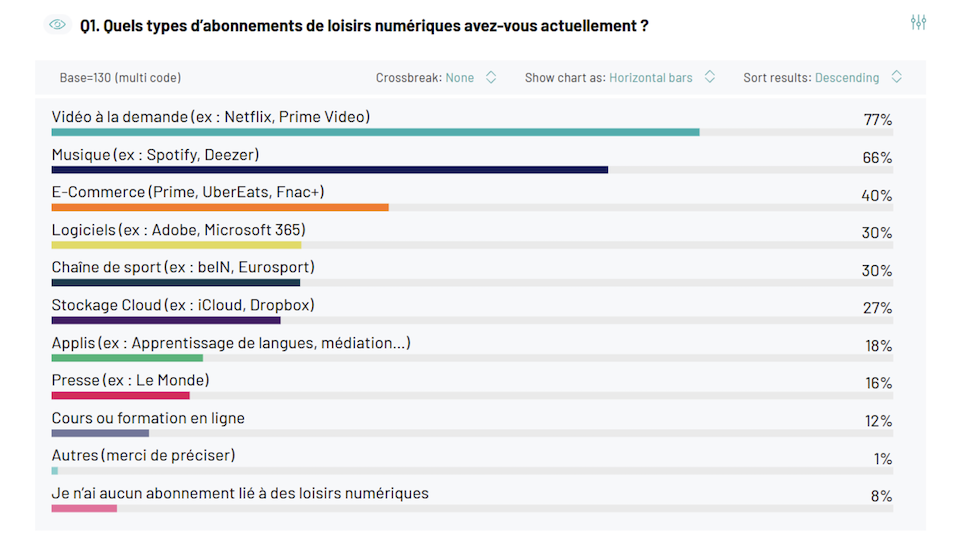 Ils consomment principalement : des services de vidéo à la demande à 77%, des services de streaming musical à 66%, des services dʼe-commerce à 40%.