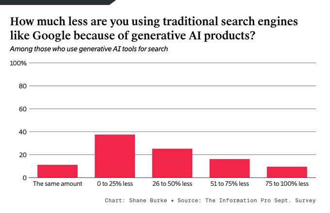Dans une une étude effectuée par The Information, plus de la moitié (55%) des sondés affirmait avoir délaissé les moteurs traditionnels comme Google au profit des outils d’IA générative. Leur efficacité n’est plus à démontrer même si beaucoup d’entre nous devrait éviter de s’en servir à la moindre occasion.