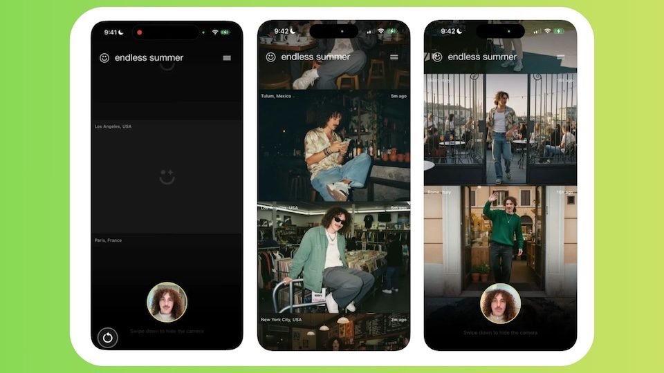 L’expérience est pensée comme un photomaton : on prend une photo, l’IA génère aussitôt une série de mises en scène exotiques — dîner sur une plage, promenade en ville européenne, coucher de soleil californien — et le tour est joué.