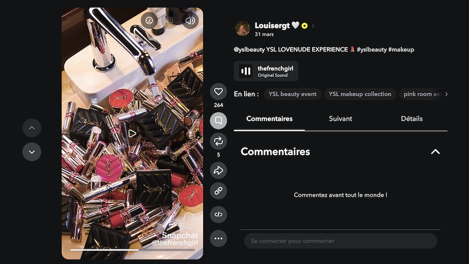 YSL Beauty ne juxtapose pas influence, contenu et essai produit : la marque les fusionne dans un même dispositif, où chaque épreuve devient à la fois contenu, démonstration et interaction.